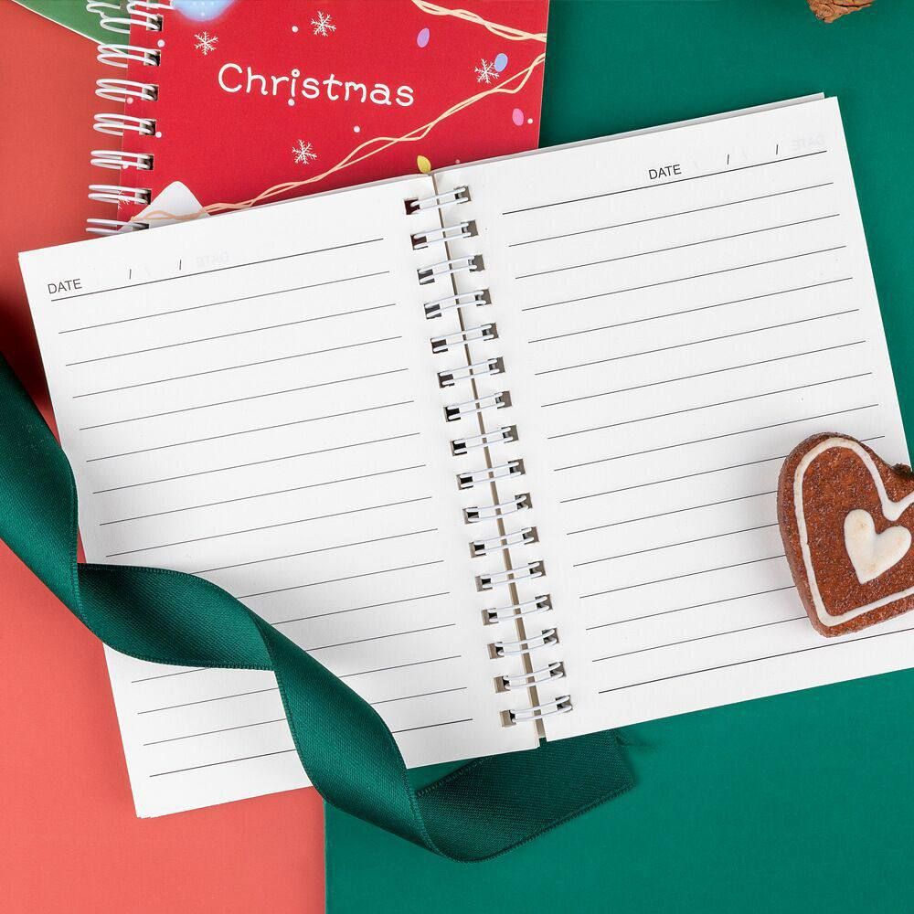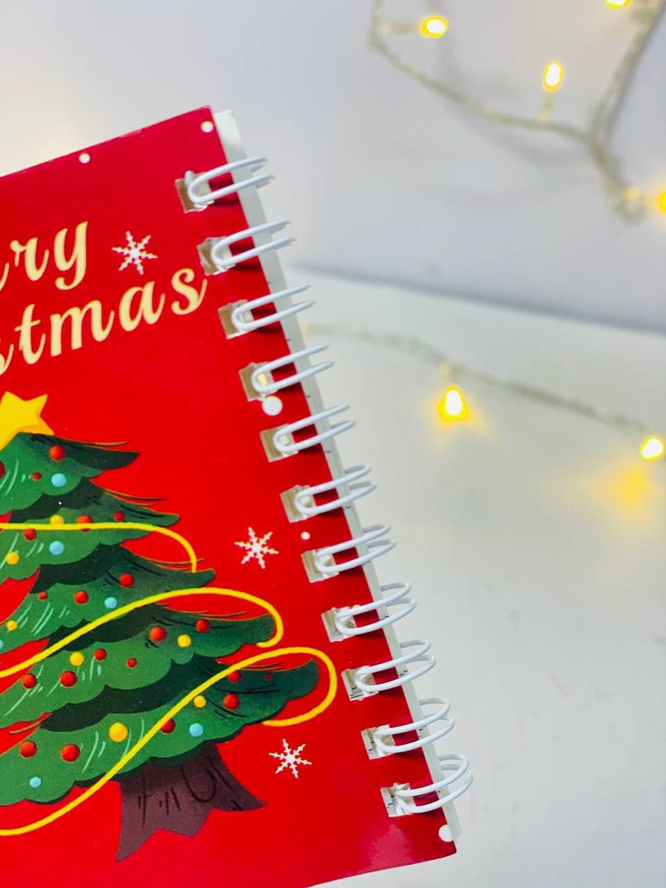 نوت بوك صغير بتصميمات الكريسماس المبهجة , يتميز بغلاف انيق مزين برسومات احتفالية.