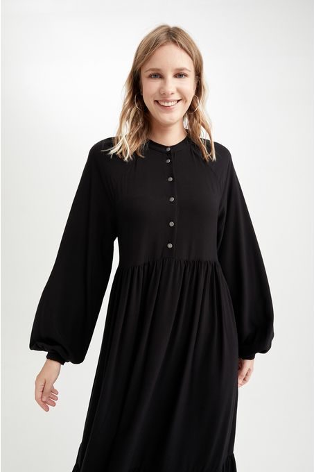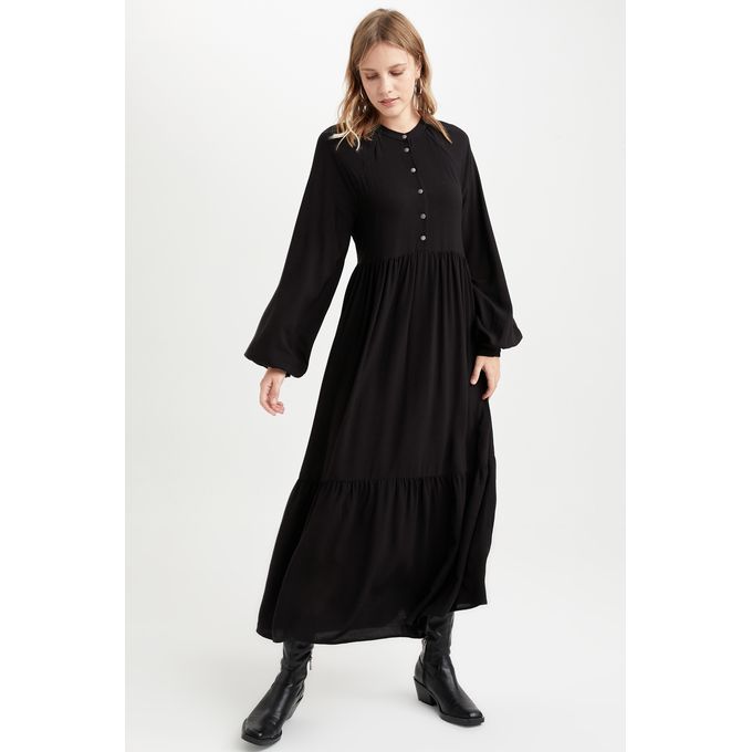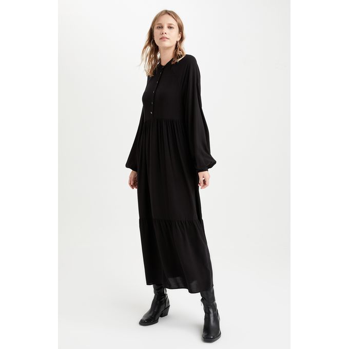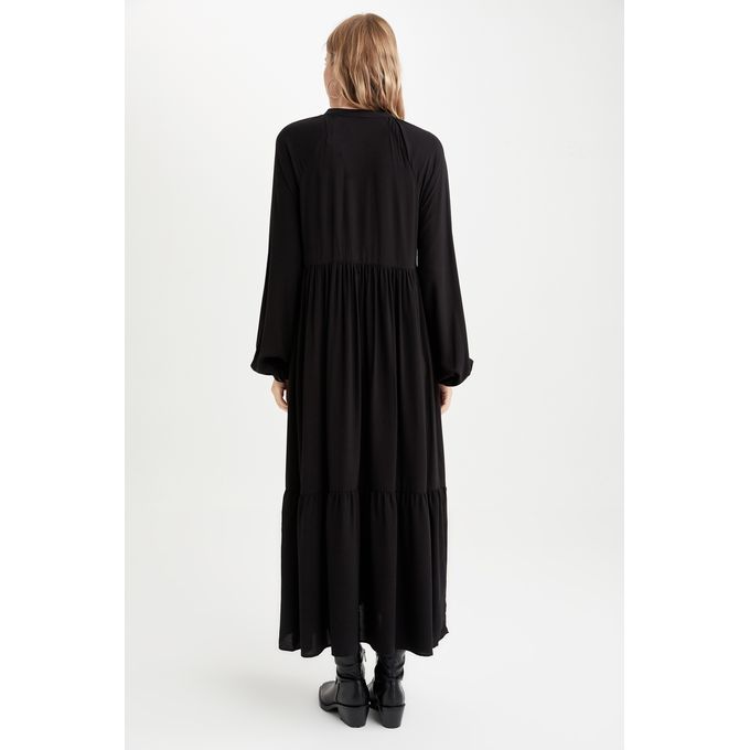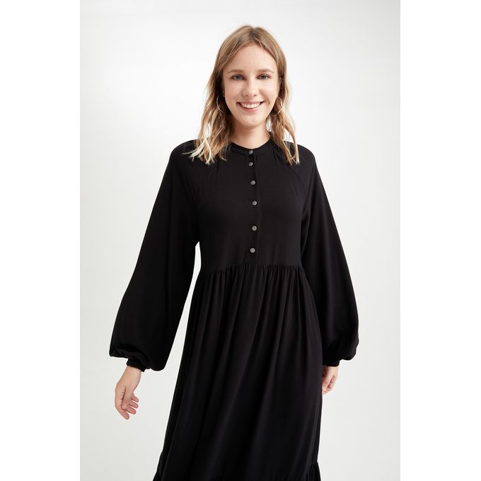 فستان منسوج بأكمام طويلة بياقة V وأكمام طويلة من Defacto – أسود