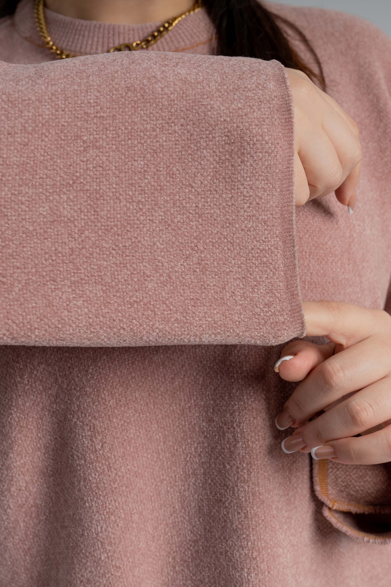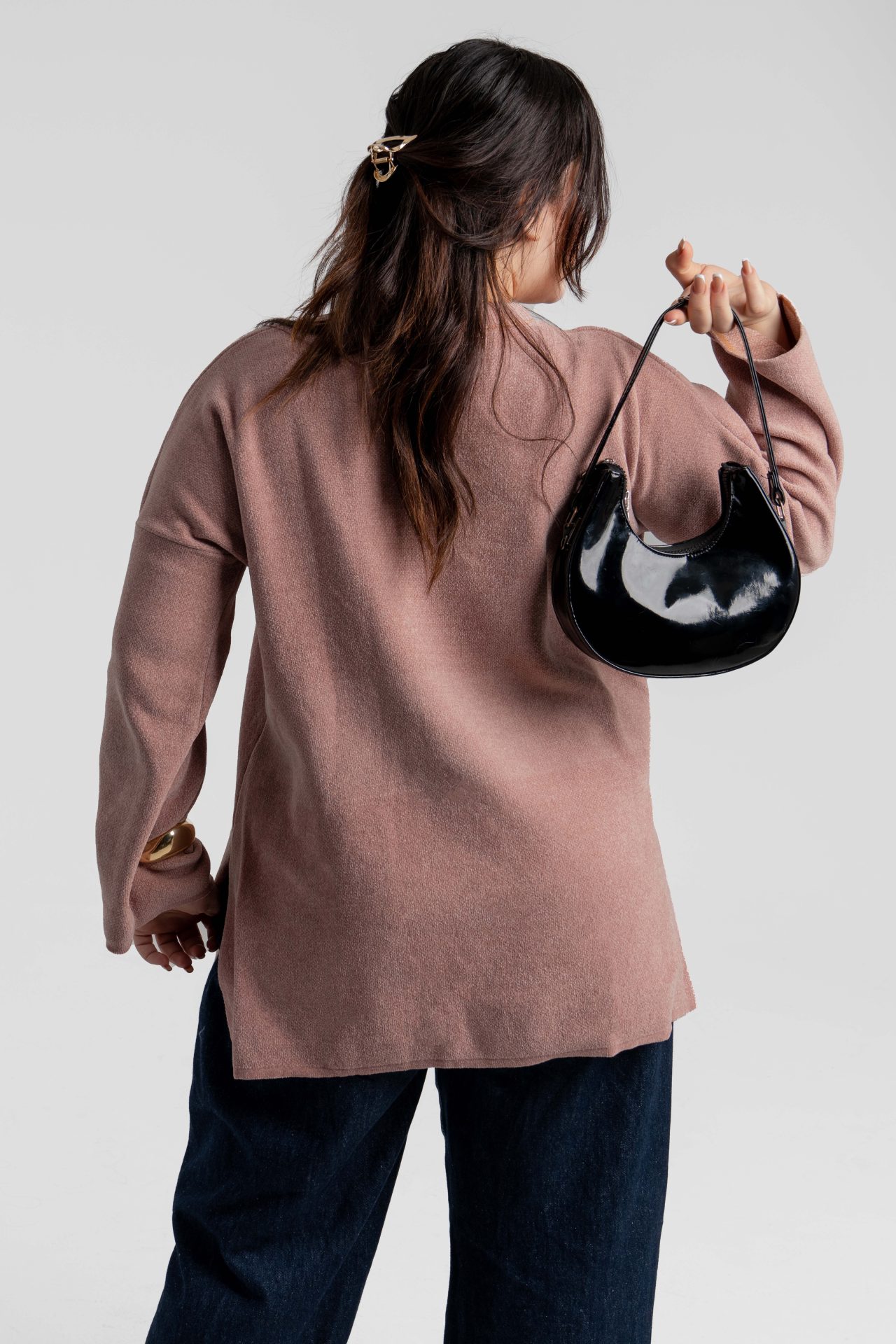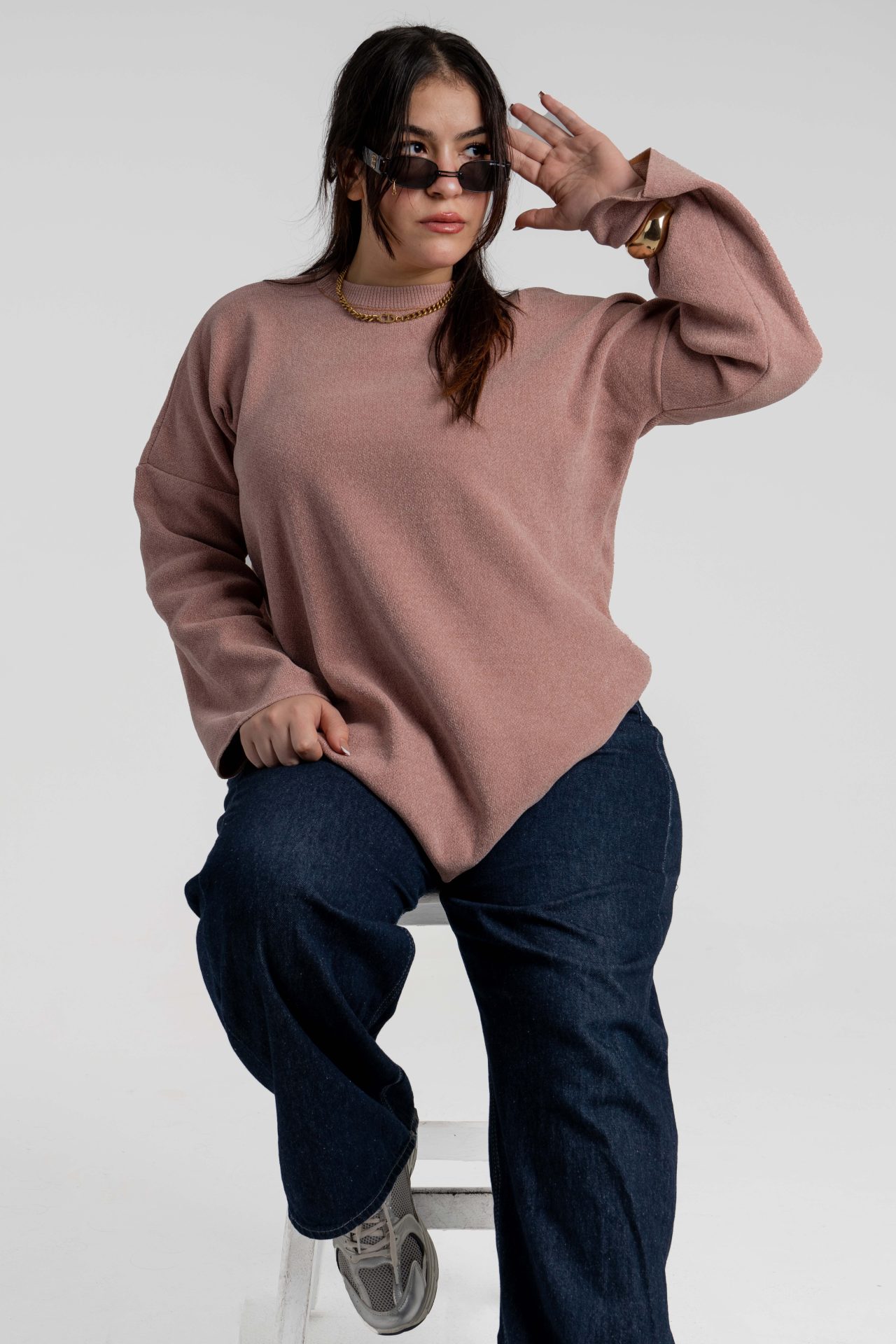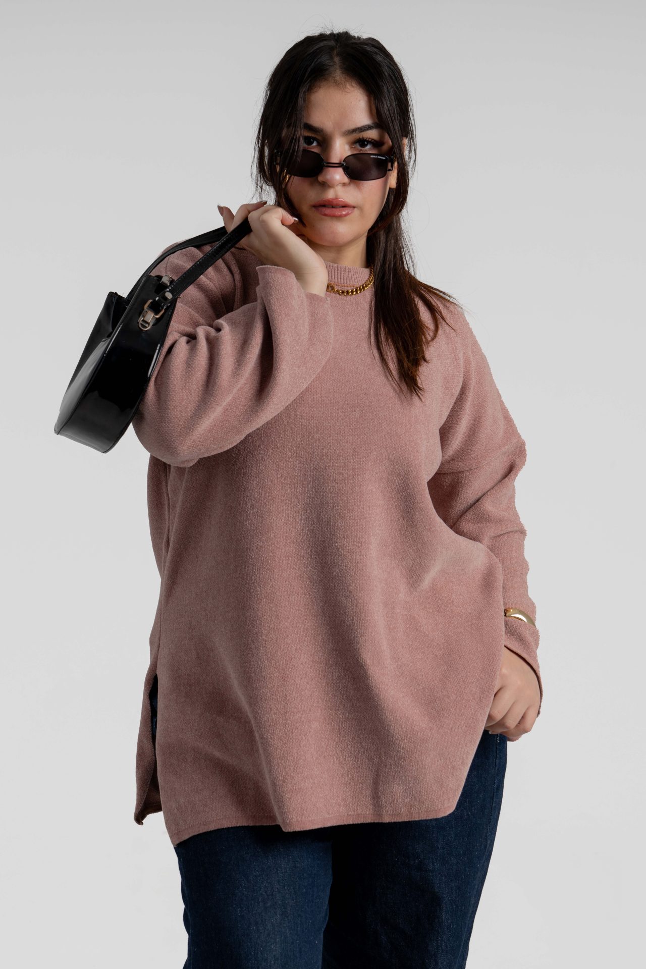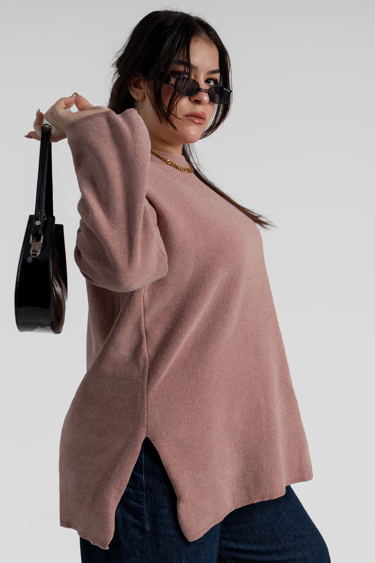 بلوفر تريكو سوفت قطيفة بخامة دافئة ومريحة عي الجسم بتصميم انيق وعصري وفاتحة جانبية تضيف ستايل بسيط وشيك , دافئ ومريح للخروج اليومي .