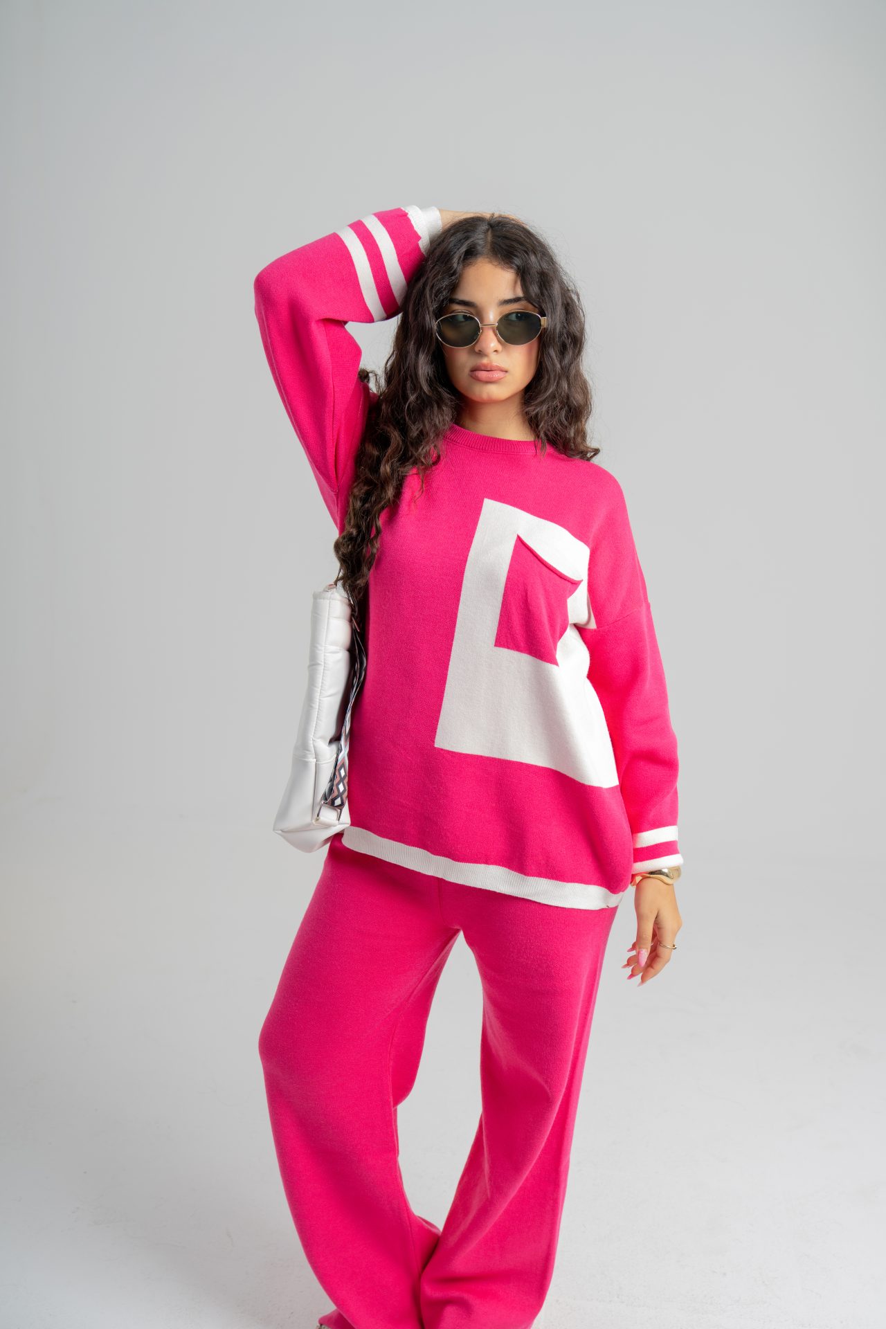 سوت تريكو بلونين بتفاصيل راقية وخامة عالي الجودة – Pink